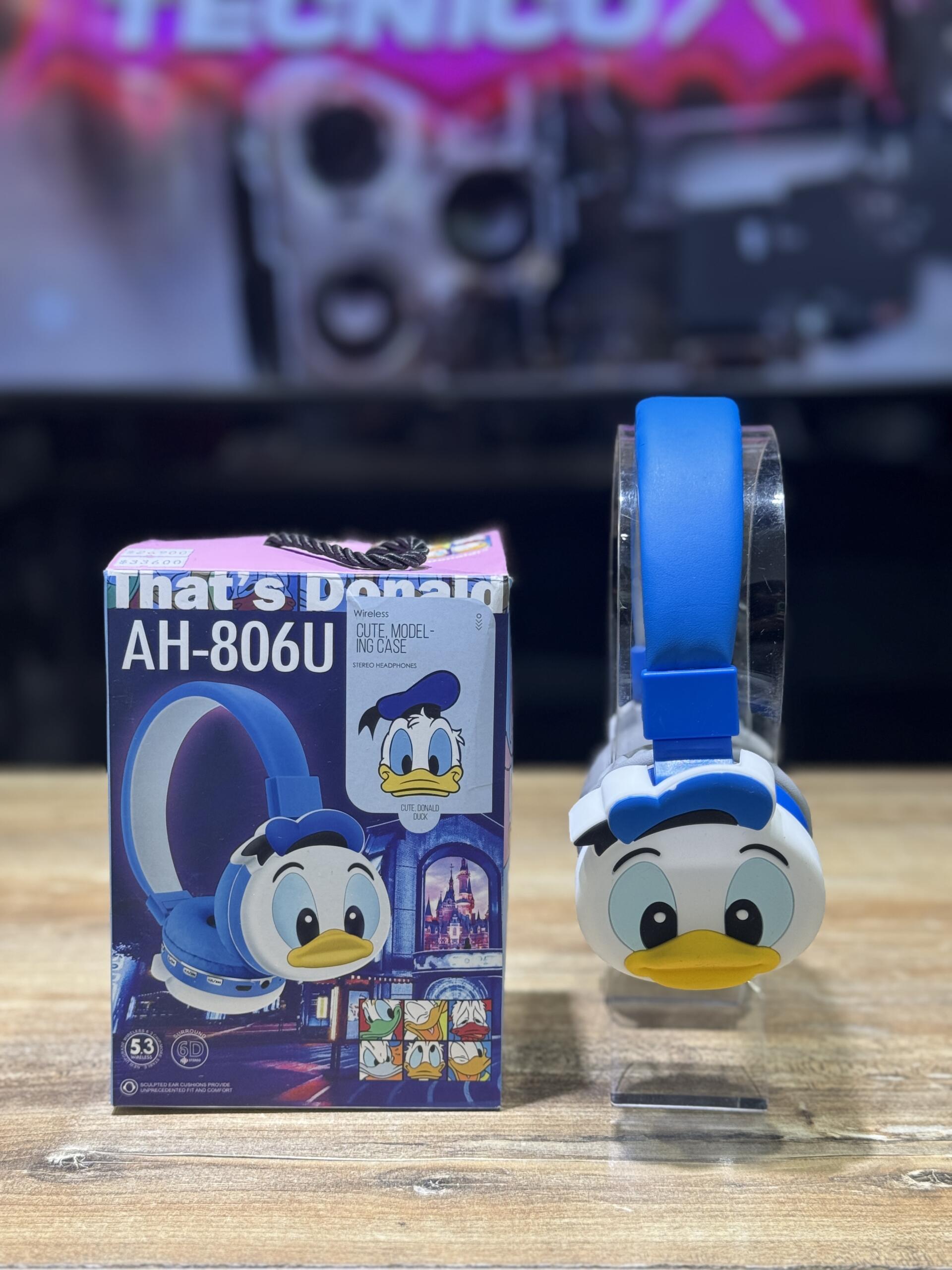 Auriculares Bluetooth 5.3 para niños con diseño adorable de Pato Donald. Diadema ajustable en color rojo, orejeras suaves y sonido estéreo HD inalámbrico. Incluyen micrófono para llamadas manos libres y ofrecen hasta 18 horas de batería en uso continuo. Ideales para música, series y juegos gracias a su diseño ligero y divertido.