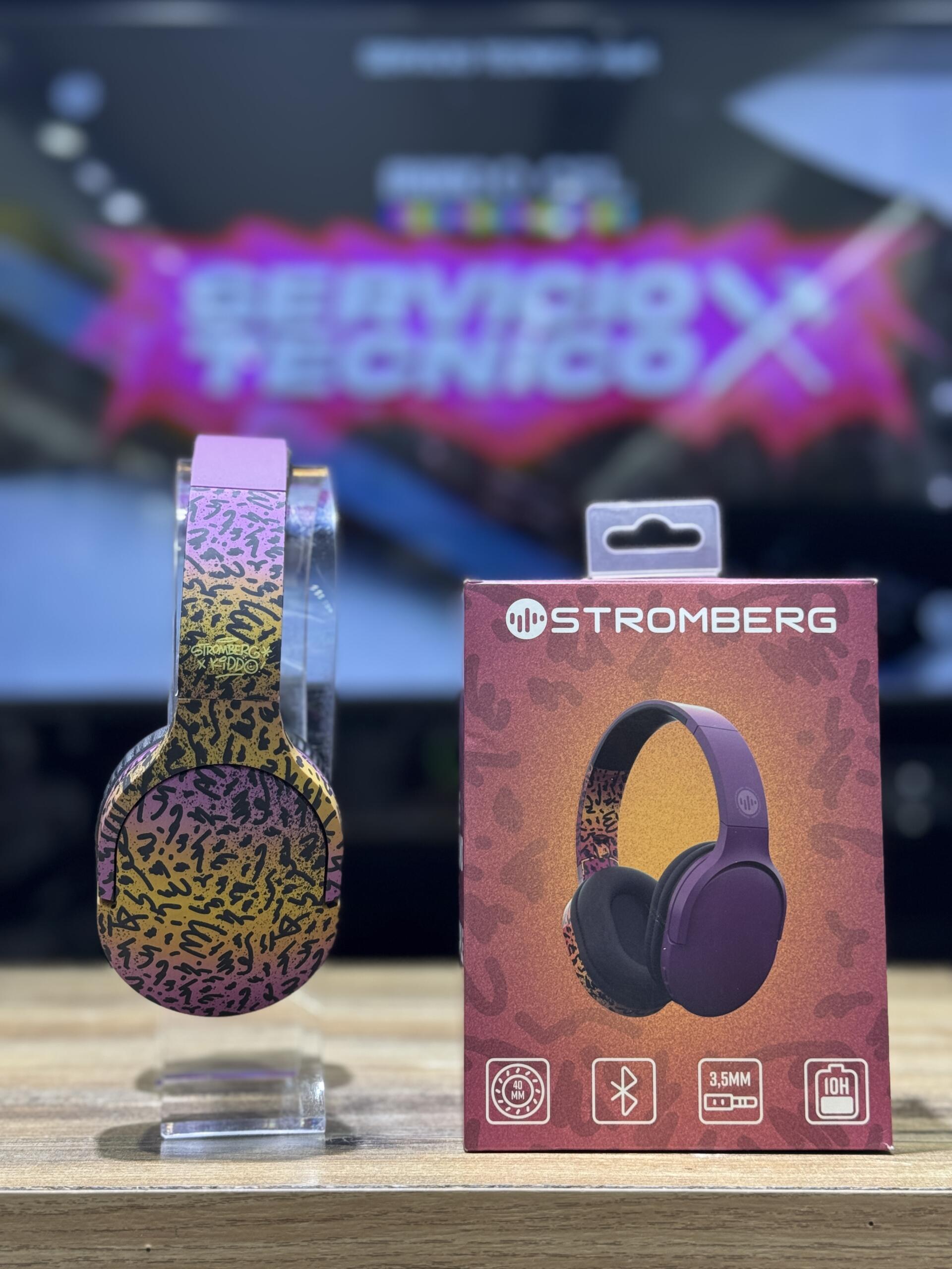 Son on-ear Bluetooth, con drivers de 40 mm, batería de hasta 10 horas, conexión 3.5 mm auxiliar y micrófono integrado. El packaging resalta su estilo vibrante y juvenil, ideal para quien busca sonido decente con un look llamativo y urbano.
