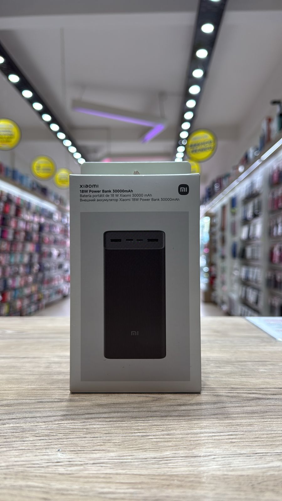 cargador portátil de Xiaomi con gran capacidad de 30,000 mAh y carga rápida de 18W. Diseño resistente y de alta duración, ideal para múltiples cargas y viajes largos sin preocuparte por la bater
