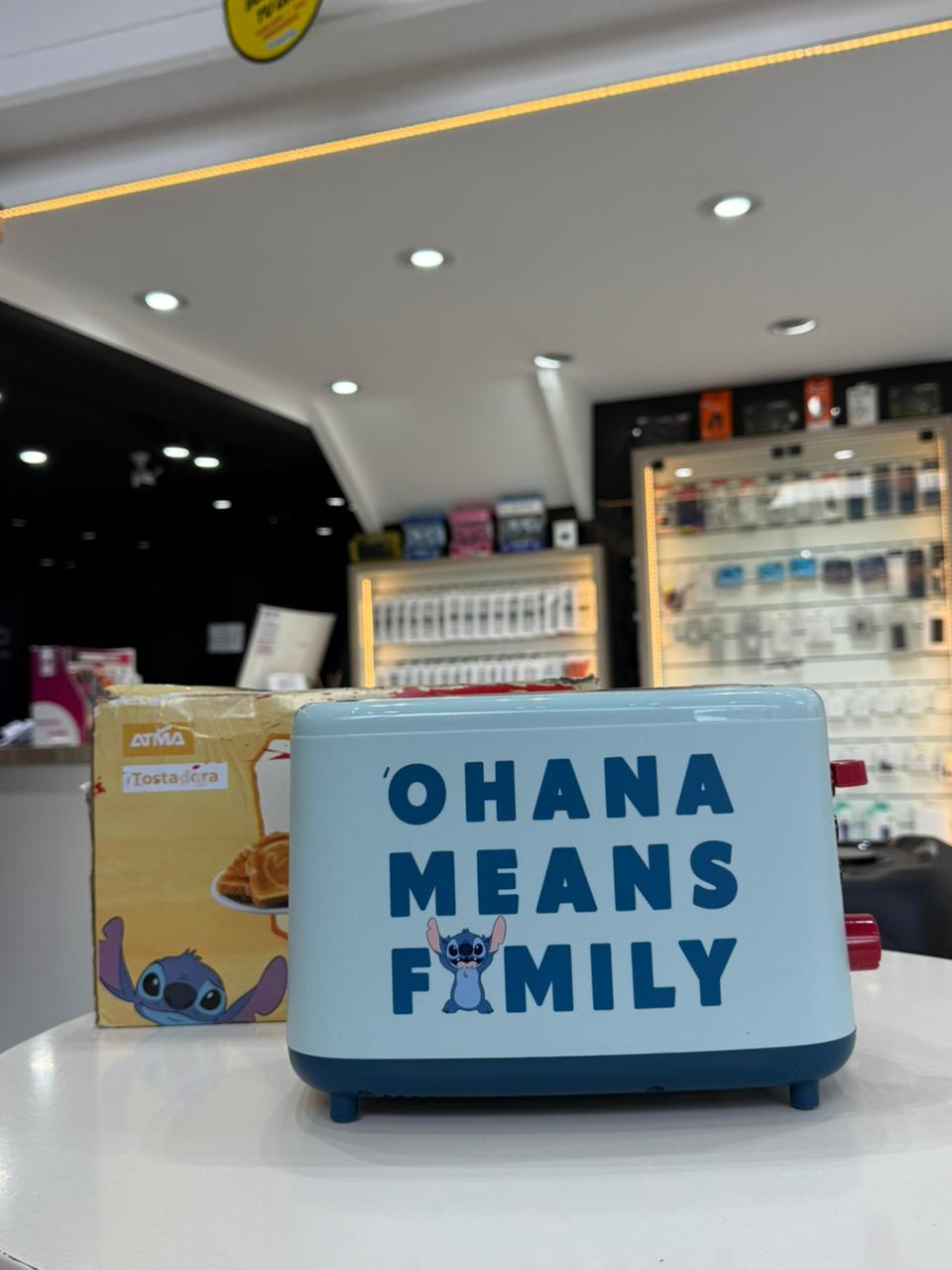 Tostadora Atma de la línea Disney Stitch, con diseño inspirado en el personaje. Permite tostar 2 rebanadas de pan a la vez y tiene 7 niveles de tostado para elegir el dorado que más te guste.Incluye funciones de descongelar, recalentar y cancelar, además de bandeja recolectora de migas, base antideslizante y apagado automático. Es compacta, práctica y combina funcionalidad con el estilo divertido de Disney Stitch